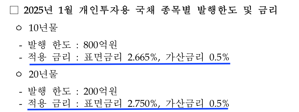 오늘은 2025년 1월 개인투자용 국채 발행 소식을 전해드리려 합니다.