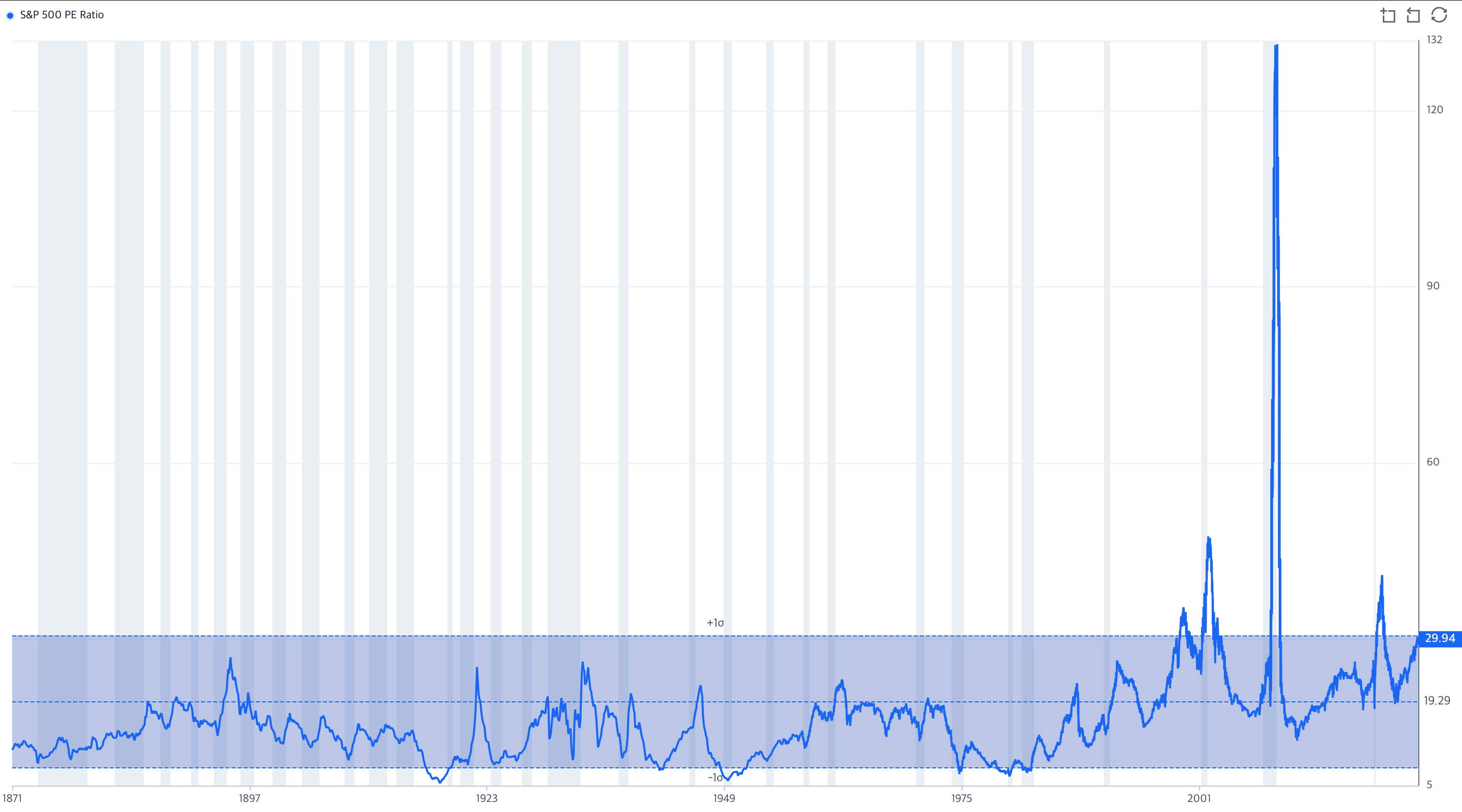 현재 미국의 S&P500의 PER이 역사 상으로도 5번째로 높은 수치를 보여주고 있는 만큼 주가의 상방보다는 하방으로의 예측이 점차적으로 늘어나고 있는 상황입니다.