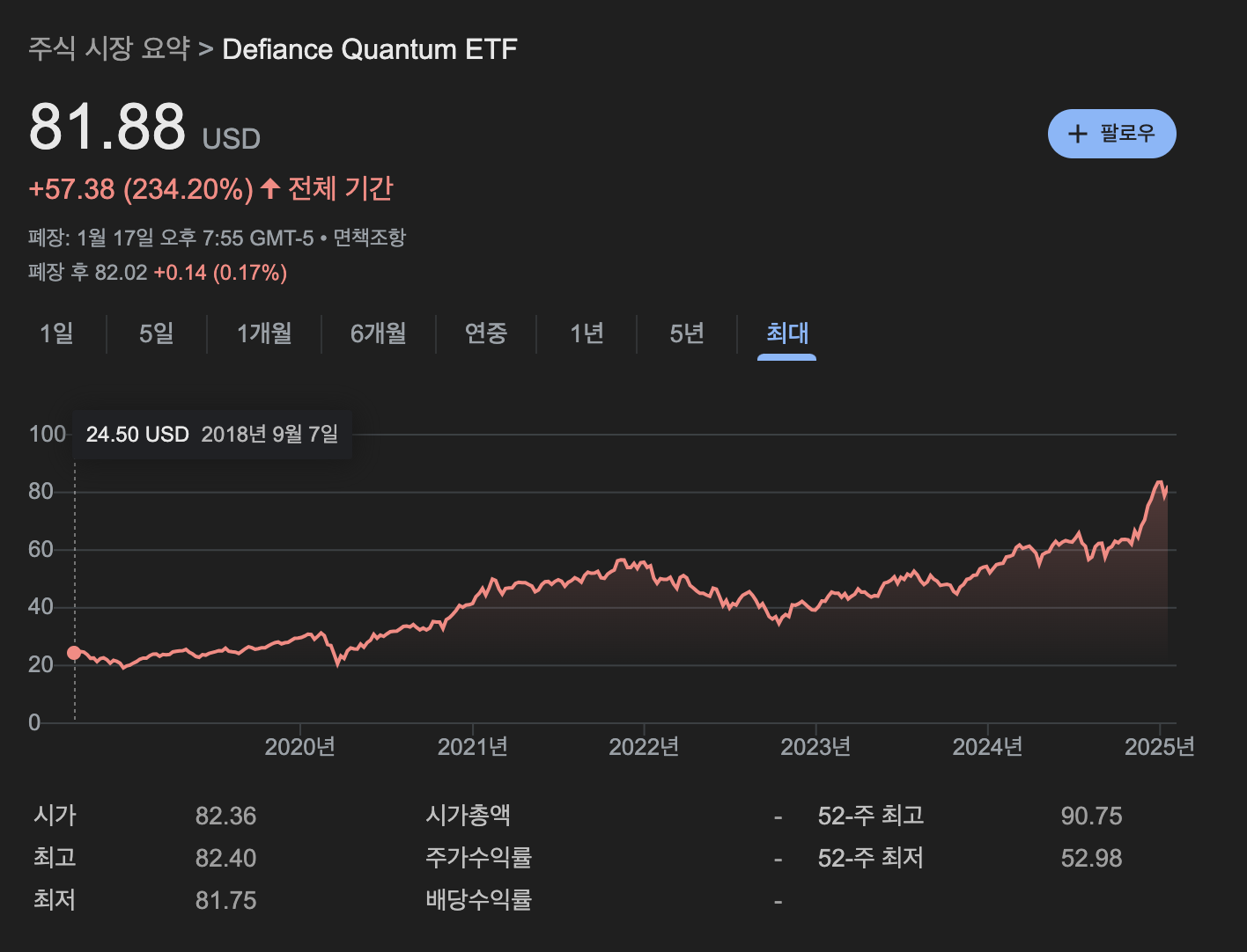 Defiance Quantum ETF는 2018년 9월에 출시된 이후, 양자 컴퓨팅 분야의 선도 기업들에 투자하는 것을 목표로 하고 있습니다.