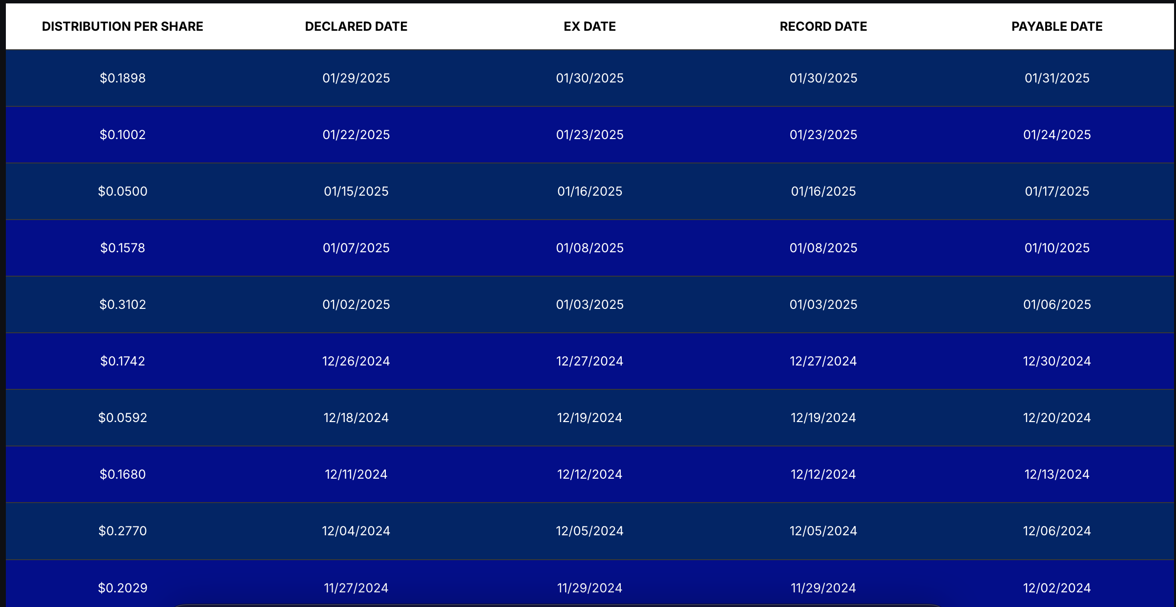 (YMAG의 주배당 내역. 배당의 편차가 크지는 하지만 보통 주당 한 달에 $0.6 정도의 배당을 받을 수 있습니다.)