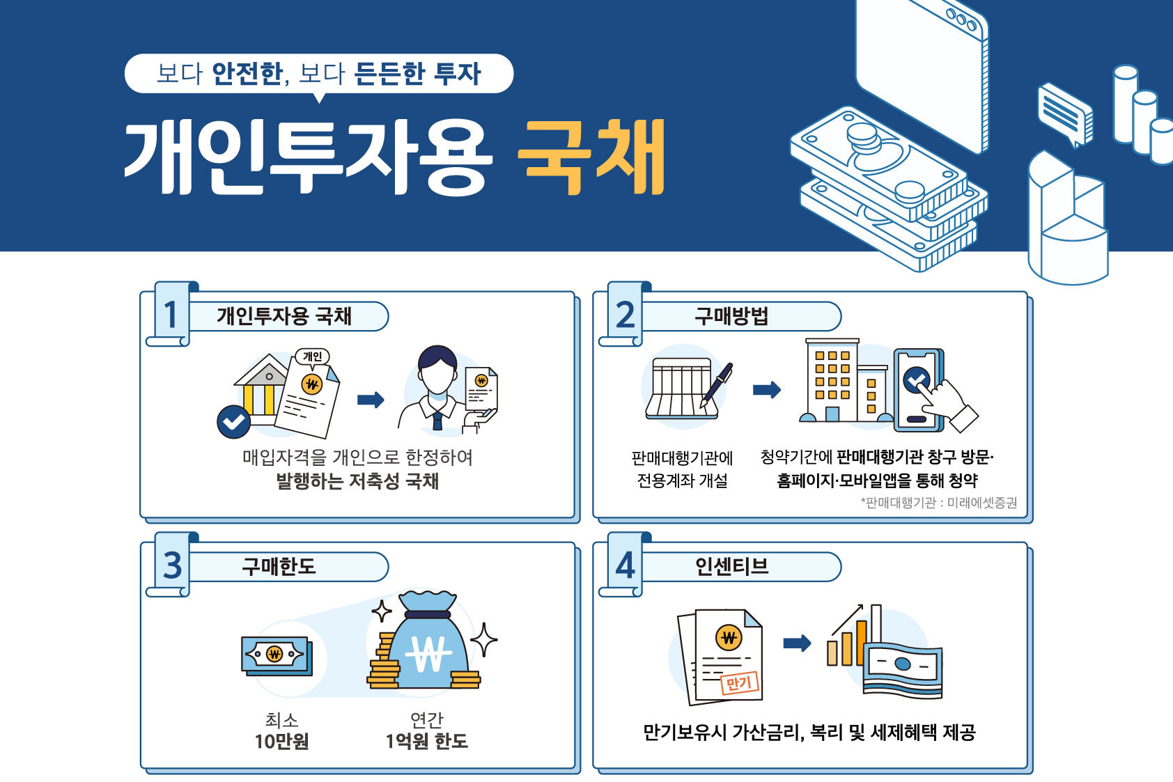 개인투자용 국채는 안정적인 수익을 추구하는 투자자들에게 적합합니다.