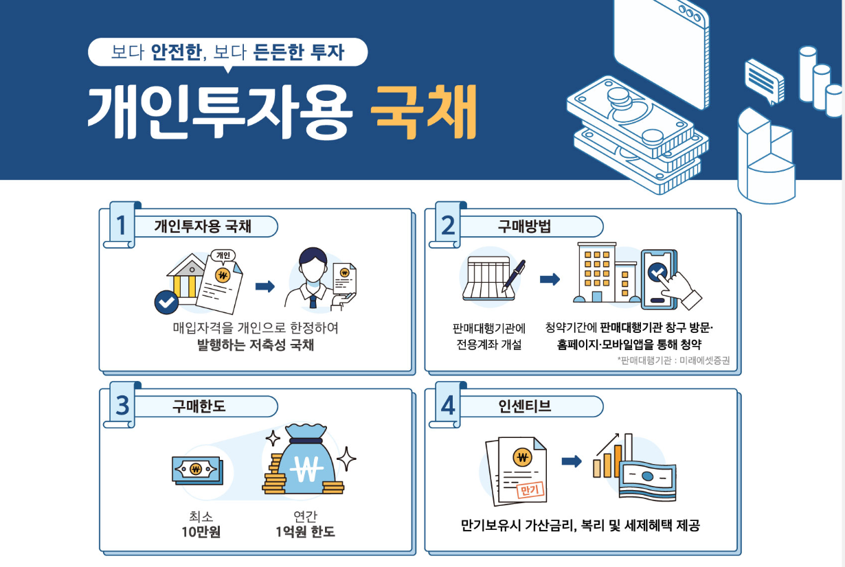 개인투자용 국채는 변동성이 큰 주식 시장에서 안정적인 수익을 원하는 투자자들에게 좋은 대안이 될 수 있습니다.