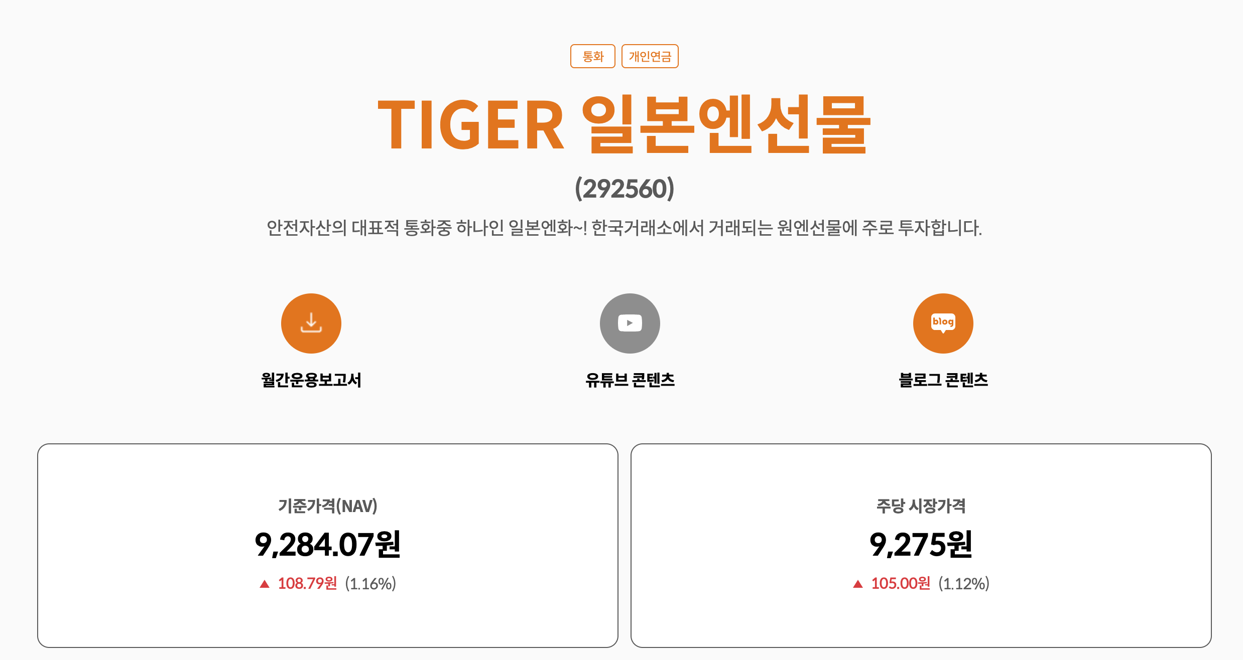 이러한 상황에서 많은 분들이 엔화에 투자하는 방법 중에서도 ETF에 손쉽게 투자하는 방법이 주목을 받고 있습니다. 그래서 이번 포스트에서는 한국 시장에 상장이 되어있는 엔화 선물 ETF에 대해서 한번 알아보도록 하겠습니다.