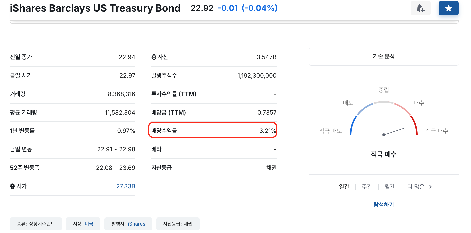 - 투자 대상: 미국 국채 전반(단기, 중기, 장기 전부)