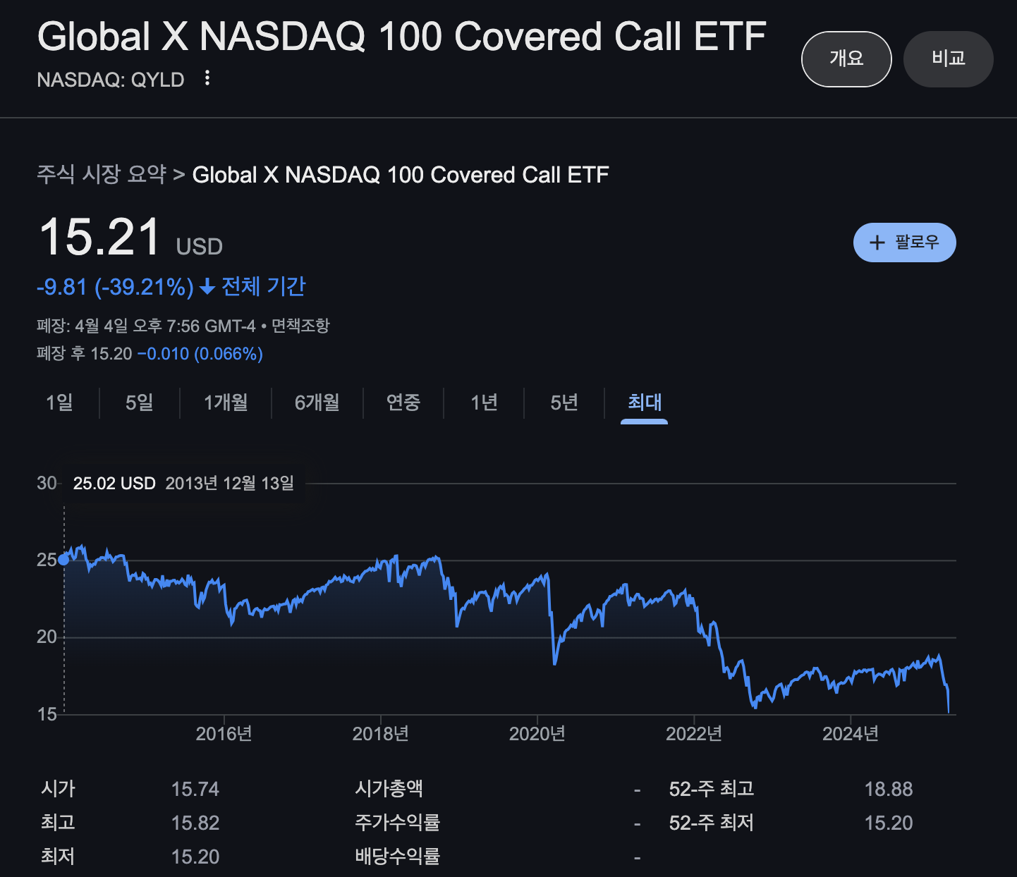 또한, 커버드콜 ETF의 특성상 강세장에서의 기초자산의 상승을 ETF가 따라가지 못하는 현상이 발생하며, 하락 시에는 거의 대부분의 하락을 손실로 받아들여야 하는 상황이 발생하게 됩니다.