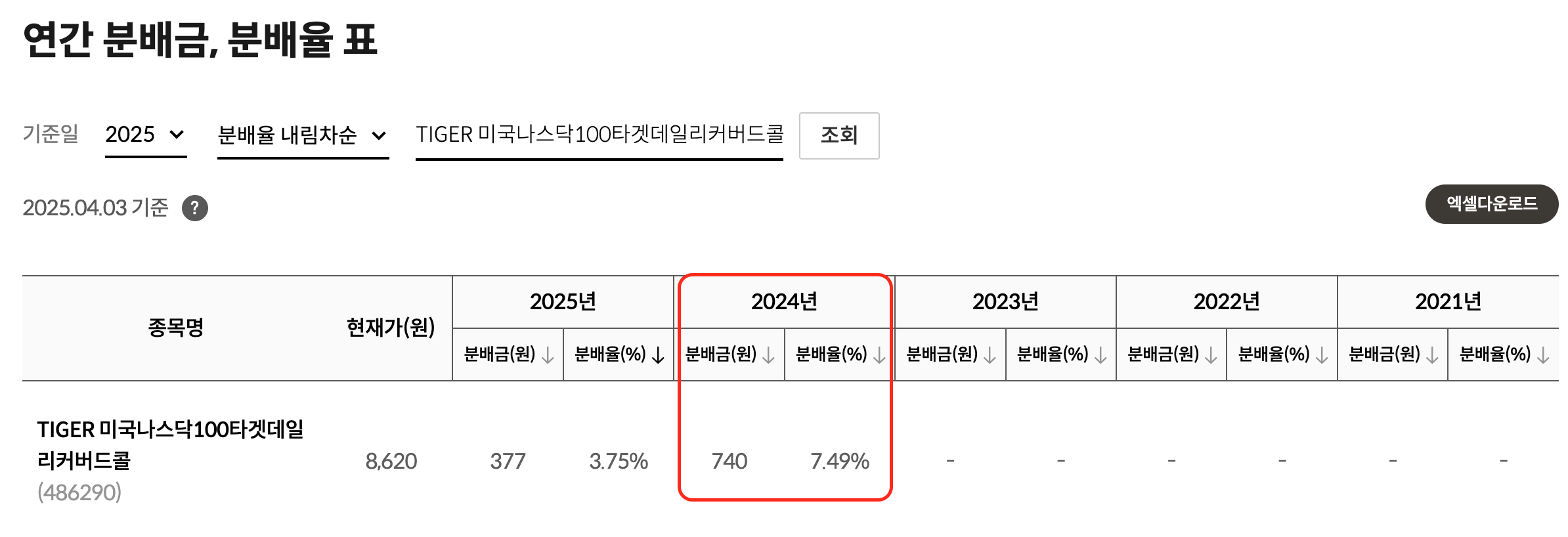 TIGER 미국나스닥100타겟데일리커버드콜 ETF는 미국 나스닥 시장의 대표적인 100개 기업에 투자하면서, 동시에 콜옵션 매도를 통해 추가 수익을 추구하는 상품입니다.