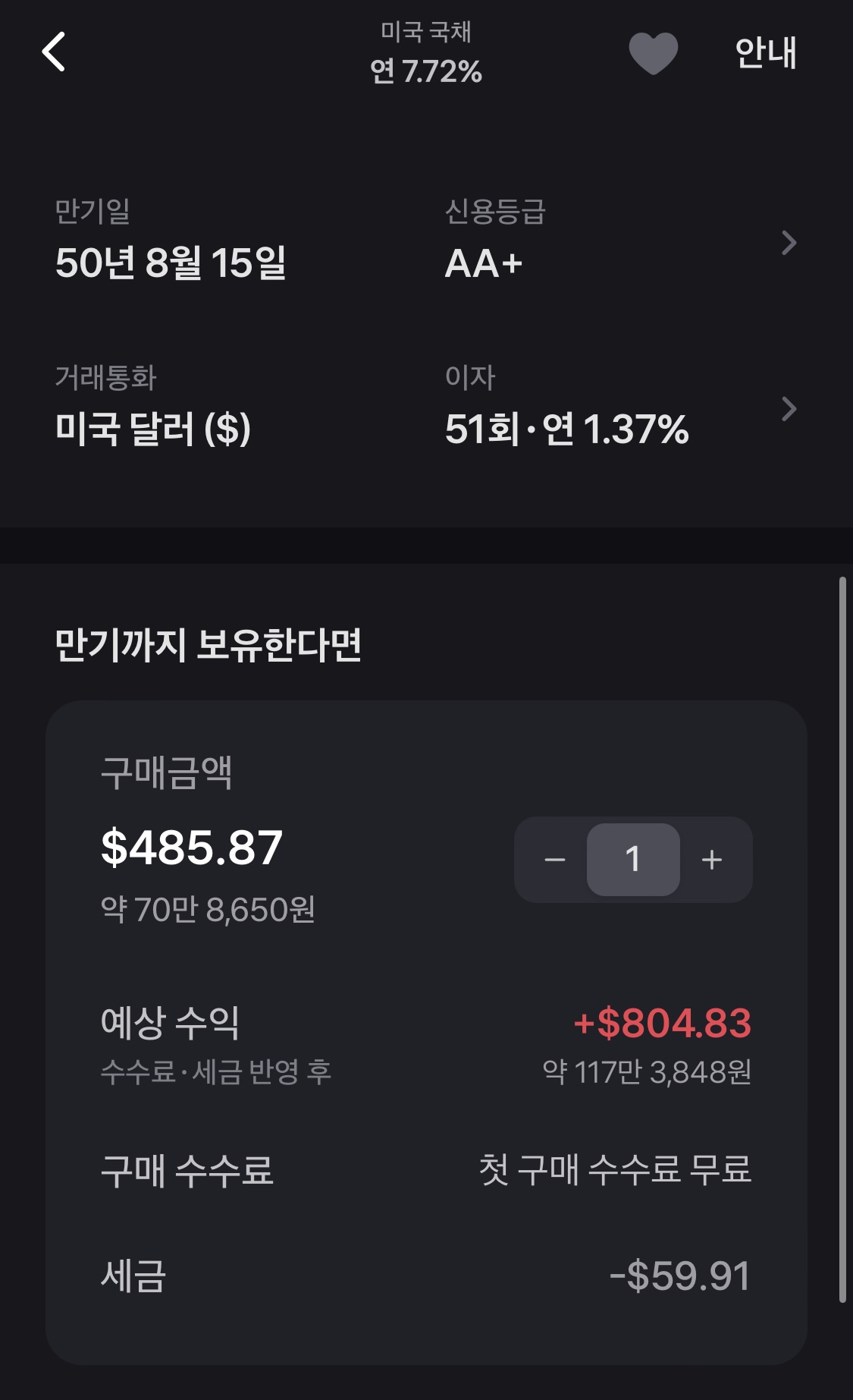 토스뱅크에서의 미국 국채는 손쉽게 클릭 한 번으로 매수를 할 수 있지만 숨어있는 수수료도 꼼꼼히 비교를 해볼 필요가 있습니다.